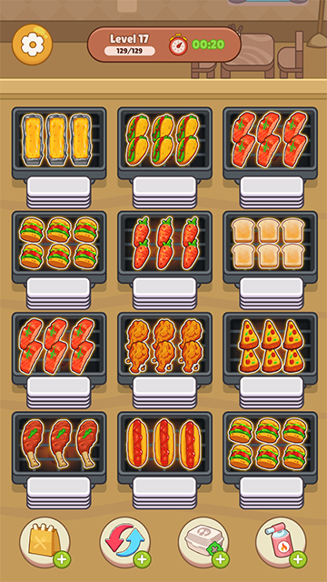 1、进入《美食滋滋》后,首先耐心等待游戏加载完毕。随后,玩家可以在主界面中选择想要挑战的关卡难度,不同关卡会带来不同的食材组合与挑战节奏。