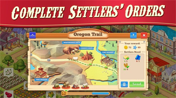 俄勒冈之旅口袋版是一款非常好玩的模拟经营类手机游戏,这款游戏为大家融合了多种玩法元素,你将成为一位前往俄勒冈地区的勇敢拓荒者,你需要对小镇进行建设,还要应对突发的天气变化和野兽袭击,游戏为大家提供了丰富的玩法,你需要通过种植、建造、运输、贸易等手段,发展小镇的经济,吸引居民们前来定居,游戏玩起来非常的有意思哦,如果你也喜欢这款俄勒冈之旅口袋版,那还等什么呢,快来下载好好体验体验吧。