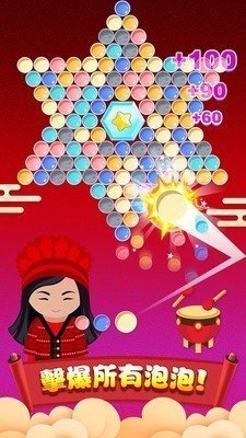 4、加入了合并相同颜色泡泡击破的新玩法,增添了游戏的趣味性和挑战性。