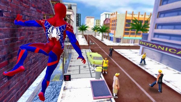 1、高度还原蜘蛛侠经典超能力,蛛丝摆荡与墙面攀爬动作流畅自然,高空穿梭物理反馈真实。