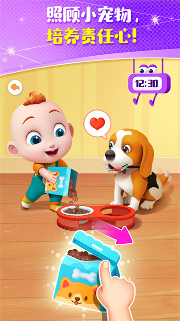 2、清晨洗漱、照顾小宠物等多种日常主题,帮助宝宝学会多项生活技能;