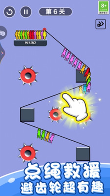 2. 运用不同绳索机制,成功救援更多小人。