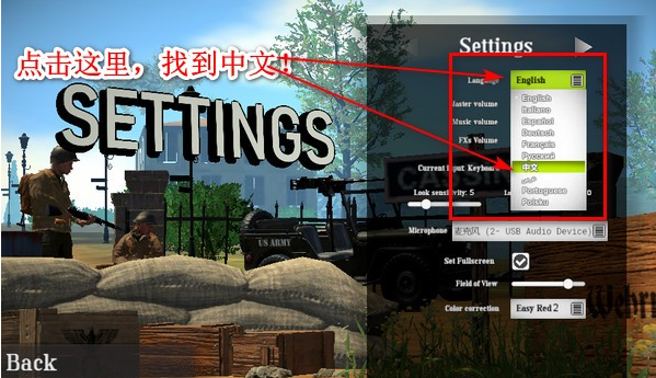 4、现在游戏界面已经变成中文啦!除了语言设置,这里还能调整音量、麦克风等声音相关选项。