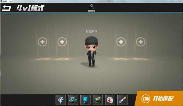 对于新手玩家而言,在达到白银段位前,仅开放“自建房”和“4V1”两种模式,点击“4V1”按钮就可以进入游戏准备界面了。想要体验更多玩法,大家可要努力升级哦!