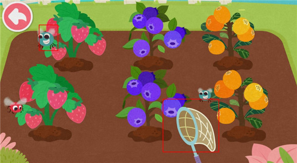 采摘水果——采摘草莓、枇杷和蓝莓,再将它们放进对应的竹篮中(学会分类);