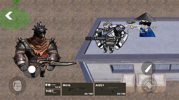 9、每局人数不多,游戏时长简短,采用虚拟摇杆与点射操作方式。