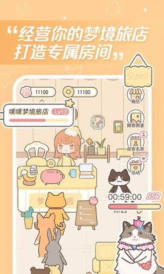 1、游戏内的小猫咪的画风都非常可爱,小猫咪会带领你进入梦乡。
