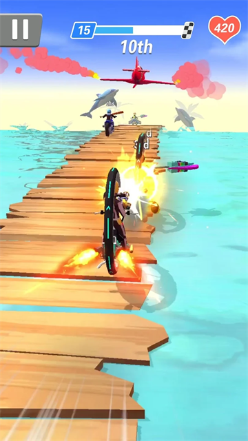 2、游戏的竞速 闯关游戏 过程非常有趣,在摩托车上还能利用武器进行战斗