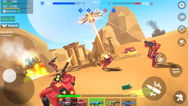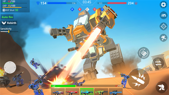 1、玩家可以选择具有不同优势和能力的各种机甲,然后战斗。