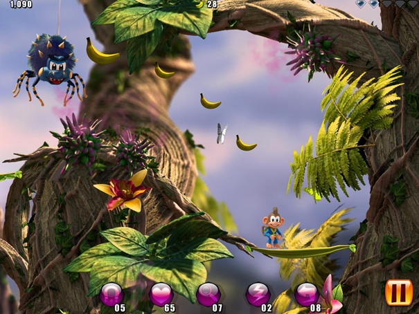 1、跳跃与滑索:利用猩猩的跳跃能力和滑索装置,穿越各种障碍物和陷阱,达到终点。