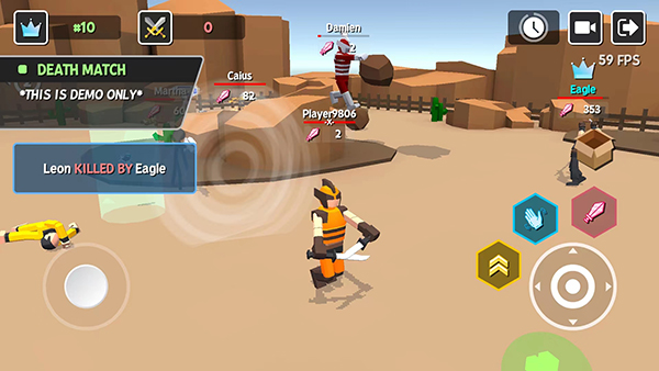 左下角的虚拟摇杆用于控制角色移动。右侧按钮分别对应跳跃、拾取物品和切换武器。操作简单直观,适合快速上手。