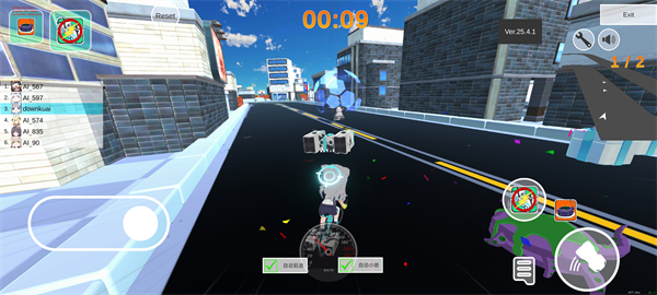 游戏内有多种有趣的道具可供使用,帮助你在比赛中获得优势,通过拾取导弹、闪光弹等道具,不仅能干扰对手,还能为自己创造机会,合理使用道具,灵活应对赛道上的每一个挑战,助你拿下比赛
