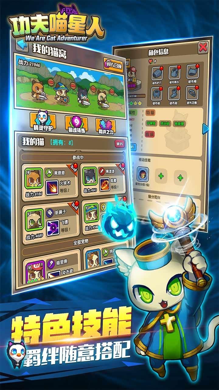 2、上百种特色猫咪,萌Q外形特色技能,各种羁绊随意搭配;