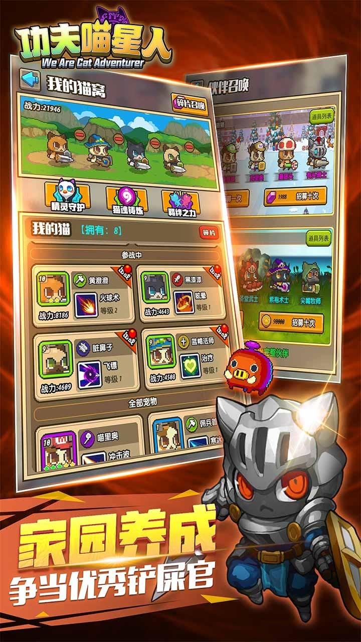 1、萌系画风:游戏采用卡通萌系画风,将传统武术的刚劲与猫咪的可爱完美结合,打造出别具一格的游戏体验。