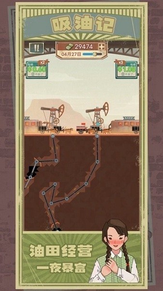 吸油记破解版是一款非常好玩的模拟经营类手机游戏,在这款游戏中,你将拥有一家石油公司,你需要进行勘探、开采、生产和销售等一系列操作,游戏采用了卡通风格的游戏画面,为玩家们真实的打造了一个石油开采全流程的模拟游戏体验,经营油田让你可以赚的盆满钵满哦,游戏玩起来和石油大亨类似,玩法简单上手快,如果你也喜欢这款吸油记破解版,那还等什么呢,快来下载好好试试吧。