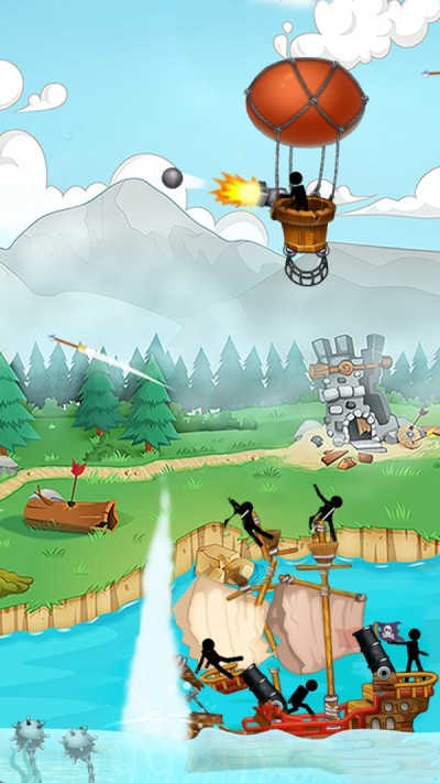 1、游戏将火柴人元素和海岛海战元素完美的融合,给你沉浸式的战争体验。