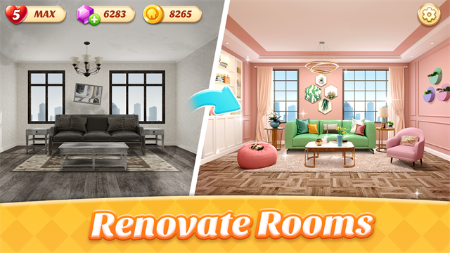 2、超多有趣的关卡完成了之后,才能开始属于你的装修挑战。
