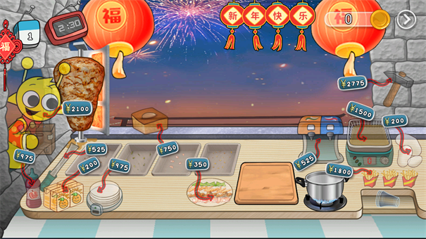 2.用赚取的金币购买新厨具、新声效包、餐车皮肤及灯光特效。