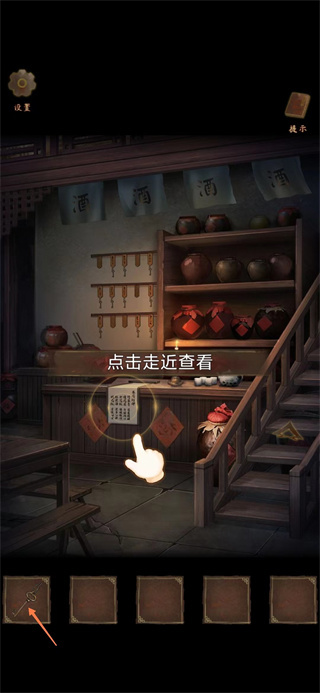 4、获取到钥匙后,在点击酒架下方的公告,查看相关线索。