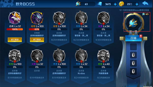 1、野外BOSS通过唤龙珠召唤,唤龙珠在任意关卡都有几率掉落哦!