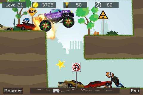 2、简单轻松的操作方式,控制车辆的移动与躲避,撞击油桶和僵尸,帮助你通过所有的难关。