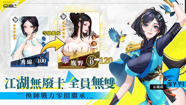全剧情都有配音,搭配精美的spine技术生动呈现角色动态,还有一百多位美女侠客可供自由培养。独特的养成系统助力每位角色都能在江湖中崭露头角,成长为你麾下的顶尖战力。