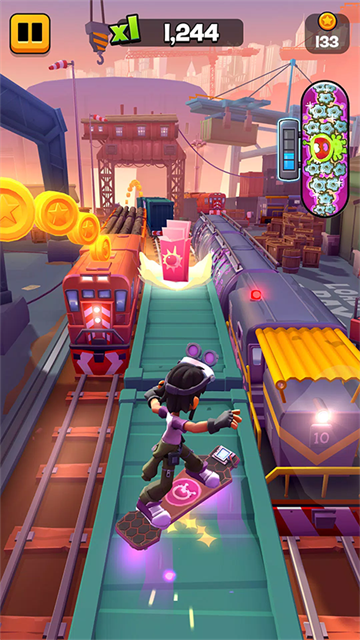 嗨,各位玩家们,今天小编为各位带来了地铁跑酷冲浪者之城手游最新版这款游戏,游戏在保留经典的跑酷玩法上将游戏场景搬进了一座立体鲜活的未来都市,玩家可以在这座全新的城市当中继续进行挑战,享受全新的跑酷挑战。与前作线性赛道不同,地铁跑酷冲浪者之城手游最新版引入开放街区概念,你可以在游戏开始时选择不同的方向进行跑酷闯关,每一片区域都有专属视觉风格与障碍机制,这种半开放结构让每次奔跑都充满未知,路线策略成为新乐趣。感兴趣的小伙伴快来下载吧。