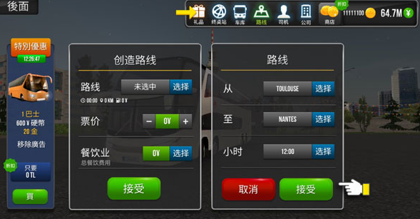 规划路线:每个城市都有限制,玩家需要按照城市火车站、医院、商业区等重要区域的位置规划合理的公交路线。同时,还需要避开拥堵和不良天气等因素。正确的规划路线将有利于吸引更多的客人乘坐公交车,提高玩家的收益。