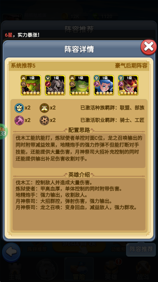 阵容组成:伐木工+炼狱使者+地精炮手+月神祭司+龙之召唤