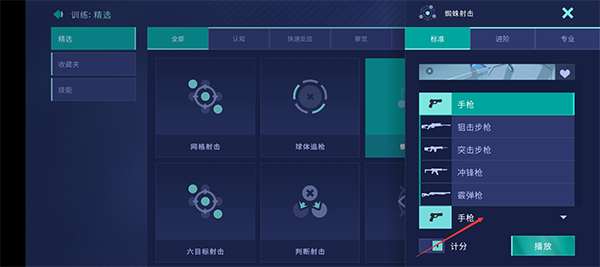 2、接下来我们可以选择训练模式,蜘蛛射击;(选择哪个模式都可以)