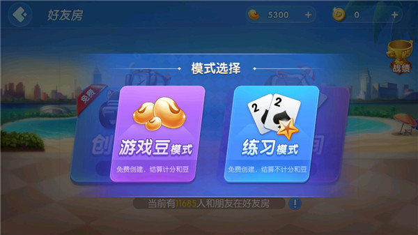 2、然后点击右边的好友房;