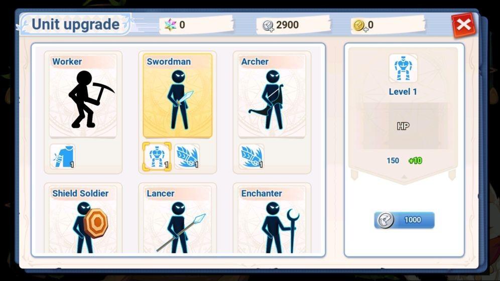 2、培养忠实的火柴人战士一起来守护我们的王国,面对敌人疯狂的进攻也不要畏惧。