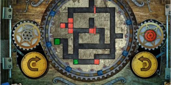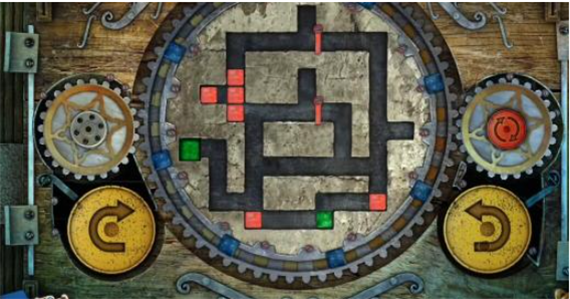 2、将按钮装上后,在门的机关处可开启转动绿色方块的游戏。
