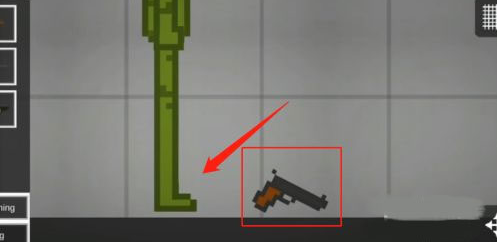 1、进入甜瓜游乐场游戏界面,将武器拖动到角色下方。