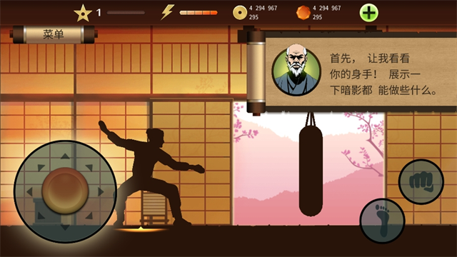 暗影格斗2将采用最热血最具有张力的动作来带领玩家们走进一个充满神奇和混乱的世界中,玩家在王国的复生计划中被门所吞噬,变成了一个看不到任何面孔的暗影,跟随着师傅多年的修炼成就了无上的忍者战斗技巧,熟练十八般武器的各种打击方式,前进后退翻滚跳跃等动作可以有效躲避对方的攻击并展开反击,将对方打入僵直状态,直到一方的血条消耗殆尽才算结束哦。
