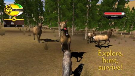 3、等你走一小段鹿,把它跟鹿群彻底分开,就开始慢慢拉近距离,等距离拉到最近,就开始追她。追上之后猛咬,不能松口,一定不能松,然后你会咬掉它小半截血,之后它就把你踢开了,但是你不减很多血,比一匹母狼咬你一口还少。