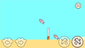 2、猫咪的身体部位是可以变换的,所以,你可以利用超级长的猫咪爪子将小鱼抓住;