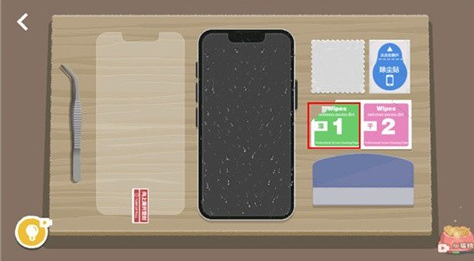 1、游戏开始后,使用镊子在手机边缘滑动,将碎掉的手机膜拿下来,碎片也要清理掉。