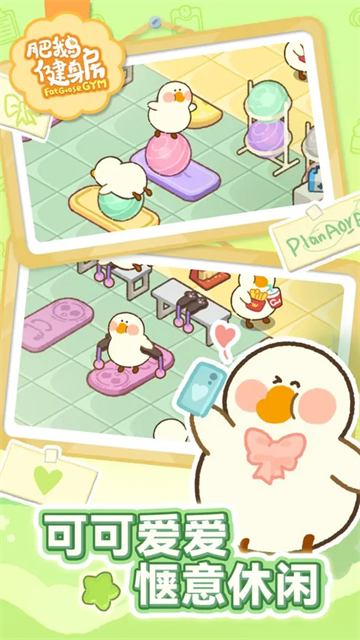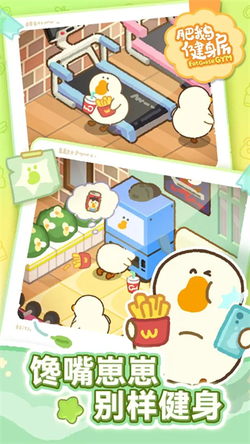 1、画风非常的可爱,与Q萌的肥鹅一起健身运动吧。
