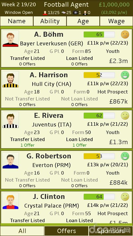 足球经纪人这款游戏将让玩家们体验到绿茵球场上吹来的凉爽风,带领球队的球员们不断的挑战击败任何阻挡你们夺冠的队伍,以势如破竹的姿态赢下一场场的比赛,球场的主场可以随时更换于不同的国家,支持所有世界赛冠军所在的场地,招募更多强力的球员和你并肩作战,制定比赛计划让进球分数不断提高,每一次的进球和场内观众们的欢呼让你也不禁自豪起来,想玩的小伙伴们快来下载足球经纪人试试吧。