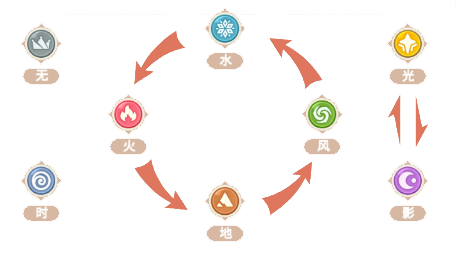 当属性克制时,进攻方的元素伤害会增加100%,反之则会减少50%。