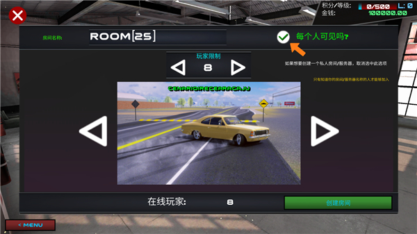5、在线匹配玩家,如果你只想一个人开房间的话,可以取消每个人可见选项;