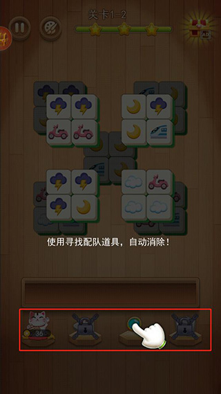 6、另外您还可以利用下面的道具来帮助你通关,比如这个寻找配对道具可以配对方块自动消除;
