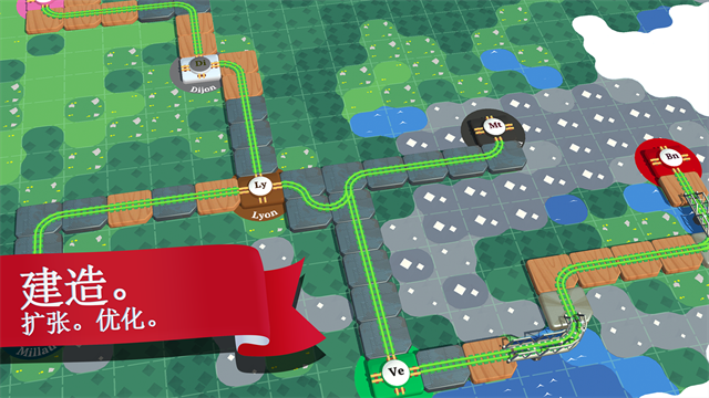4、收集铁轨,连接各个城市,体验每个城市的特殊魅力,最终你的铁路网络将可能覆盖整个欧洲!