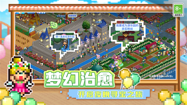 游乐园梦物语这款游戏将围绕着游乐园的经营作为主题来让玩家们自由发挥创意,不管是场馆内的设备升级,还是招聘更多的工作人员和宣传游乐园的热度都会让你的游乐园经营更好,从优质的服务到好玩的设施,都是当地小镇人们的最爱,温馨的游戏体验和充满像素化风格的画面以及超级丰富的游戏内容都会让玩家们一次性玩到爽,从白天经营到黑夜,不断的改善游乐园让你坐着就把金币给赚了。