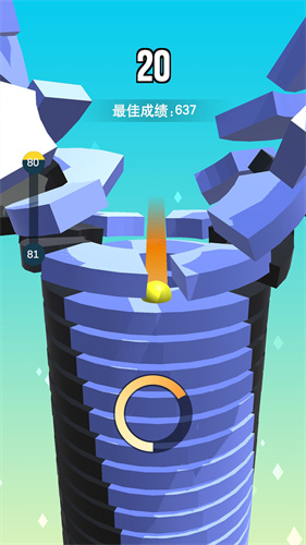 3、游戏难度会随着关卡的进度逐渐的增加,螺旋塔会转的越来越快,黑色砖块也会变多。