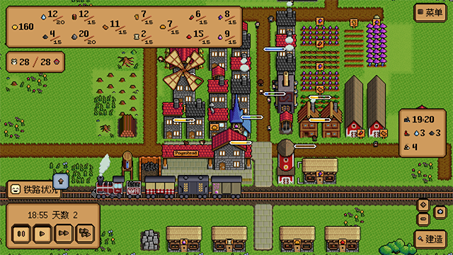 2、收集村民生产的资源和商品,将其转化为金币,与铁路进行交易,换取村民所需的其他资源。
