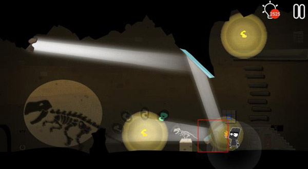 14、调整下图所示位置处红框的镜片,在墙上获得一个恐龙的遗骸图片。