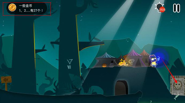 18、接着走到右边的场景,将获得的金币往右侧的图像上丢。最后就可以通关了。