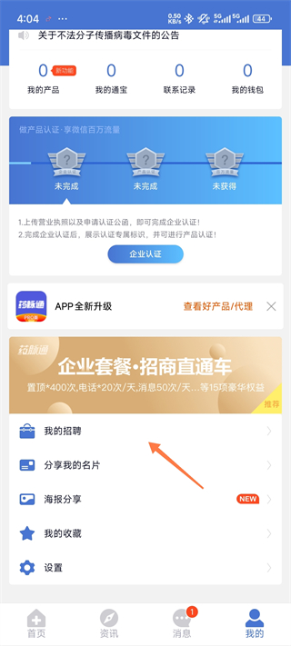 5、发布成功后,点击【我的-我的招聘】